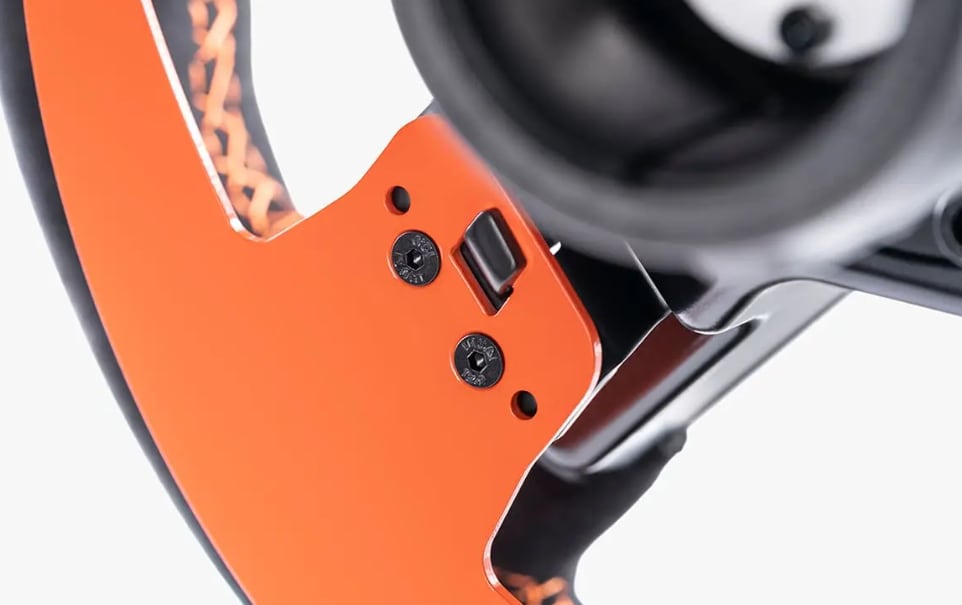 つや消し加工のアルミスポーク、Alcantara® 純正グリップ、オレンジ色のステッチが特徴です。 取り外し可能なパドルに Snapdome™ を採用しており、満足のいく「クリック」応答を実現しています。 対応ゲームでは RevStripe™ と 3 桁の LED 画面に有益なデータが表示されます。 また、ゲームプレイ中にチューニングメニューにアクセスし、設定を微調整できます。
