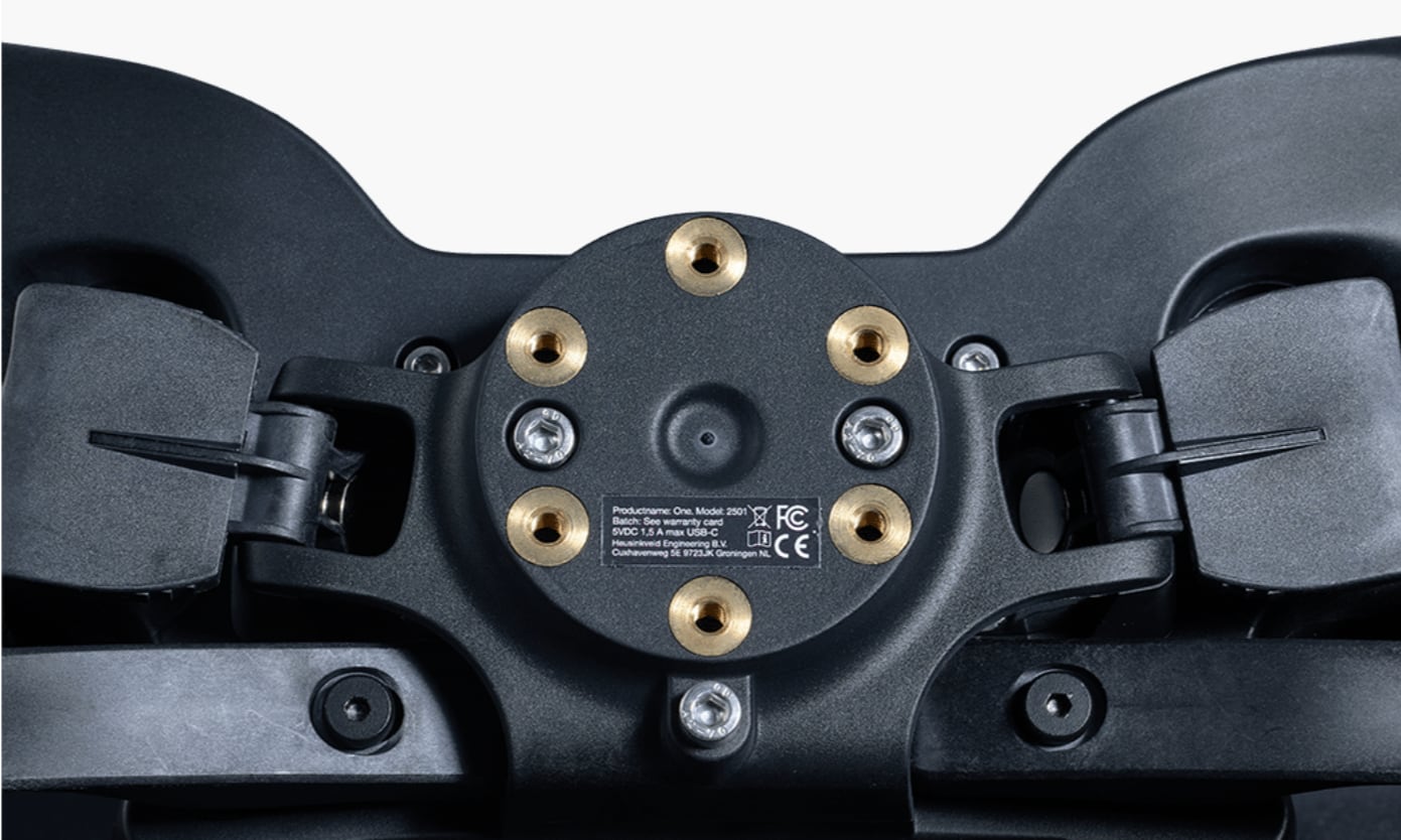 Heusinkveld Oneの後部には、統合型50.8mmのネジ付きハブが搭載されています。つまり、Heusinkveld Oneのステアリングホイールに直接取り付けることができる様々なホイールベースクイックリリースがあります。